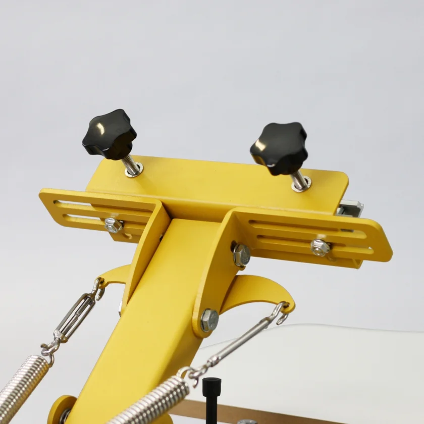 Minden szitanyomó keretünk, a kis A4-estől a túlméretezett A2+ keretekig, egyszerűen befogható ebbe a gépbe. A nyomtatófej legfeljebb 4 cm profilvastagságú kereteket fogad.Szállítási terjedelem
